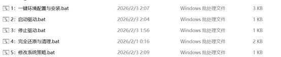 - 停止驱动: 游戏关闭后,建议运行 3:停止驱动.bat 释放资源。